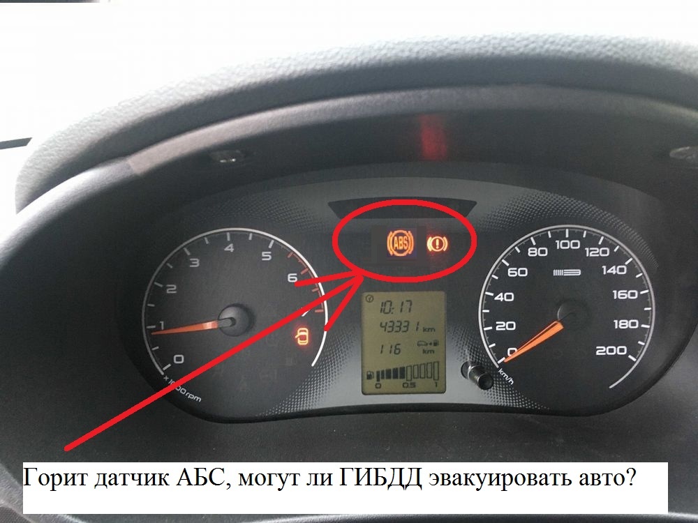 Инспектор ДПС увидел, что горит датчик АБС и хочет эвакуировать автомобиль, когда это будет правомерно. Ответ автоюриста