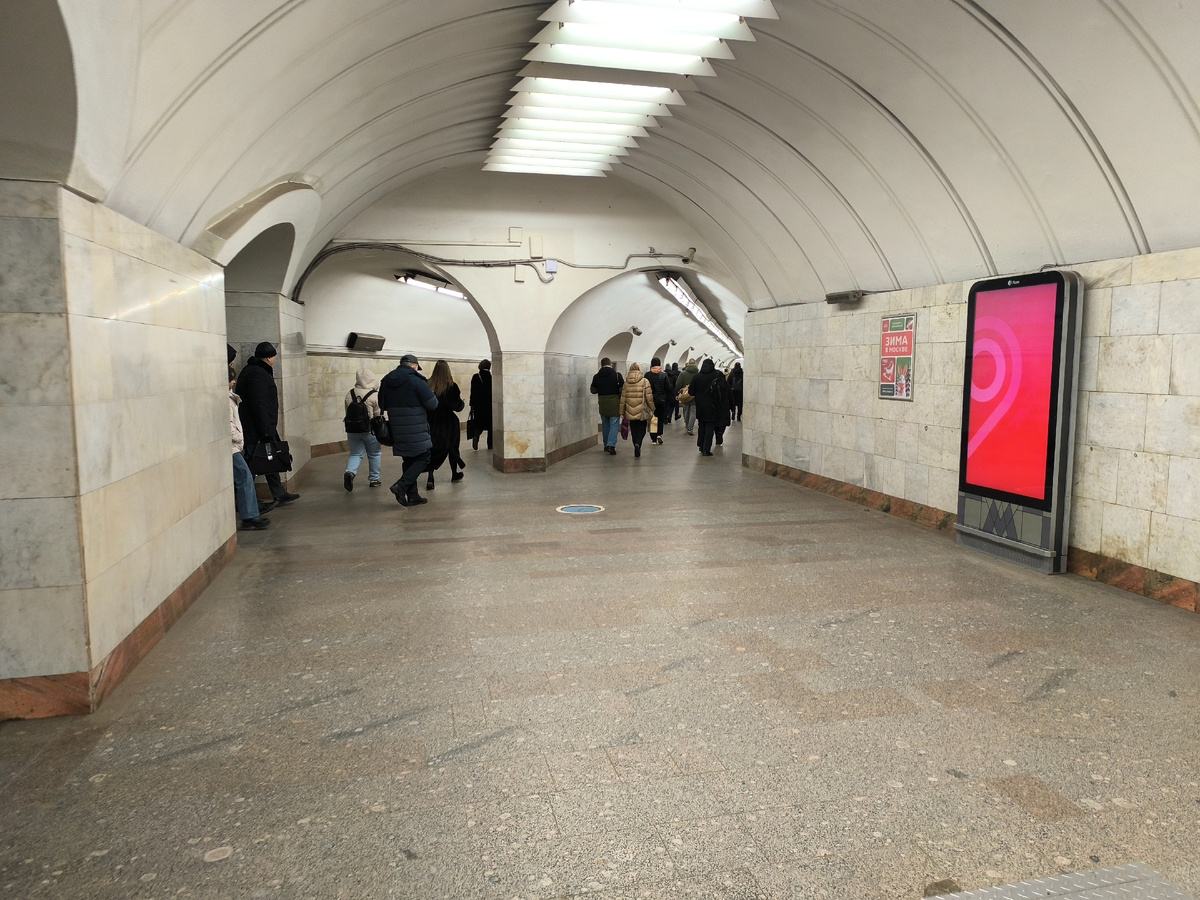 Настенное объявление направляет меня к 4 выходу. А где 2 и 3? Что характерно, отсутствие выхода под номером 1 меня смутило только при написании данной статьи. Покорно иду к единственному выходу со станции. Может, потом появится второй выход или хотя бы третий? Спойлер: нет. Четвертый выход с радиальной Белорусской единственный. Я потом без спешки проверяла.