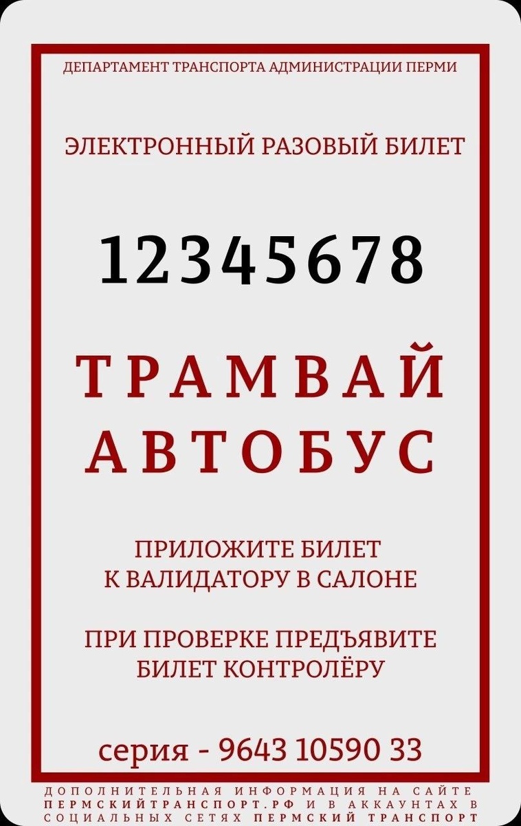Власти Перми презентовали дизайн одноразового билета для поездки в транспорте