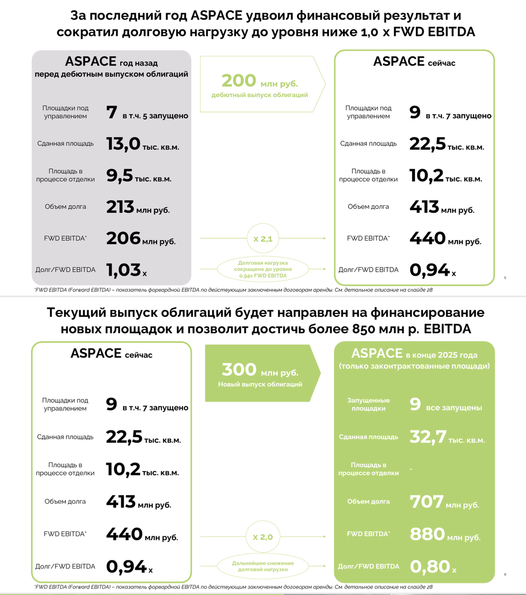 😎 Приятнее пятничного утра может быть только воскресное, но до него нам с вами еще надо сквозь свежие выпуски добраться. Их немало, ловите актуальный ассортимент: ✅ Три выпуска начнут можно будет встретить в стакане после обеда (а на первый до 13:00 можно податься на первичку, правда, не у всех брокеров): 〰️〰️〰️〰️〰️〰️〰️〰️〰️〰️ 🟡 А СПЕЙС 001Р-02 📊 🅱️🅱️ 🔹 ISIN: $RU000A10AYB6 ▪️Купон фиксированный: 31% ⚠️ CALL через 1,5 года торгов ▪️ Погашение через 3.5 года ▪️ Рейтинговый отчет: ➖ https://raexpert.ru/releases/2024/dec06b (06.12.2024) 💬 Интервью с эмитентом: https://youtu.be/hLX_g2vGNyY —————— 🏦 Финансовые показатели эмитента (за 9 месяцев 2024 года): 💬 В скобках указаны суммы за аналогичный период прошлого года. ⏫ Выручка: 728 млн. (364 млн.) ⏫ Чистая прибыль: 17,69 млн. (15,77 млн.) 😳 Краткосрочные заемные средства: отсутствуют (163 млн.) 🔴 Долгосрочные заемные средства: 363 млн. (154 млн.) Оператор коммерческой недвижимости пожаловал за вторым займом. При этом пока к