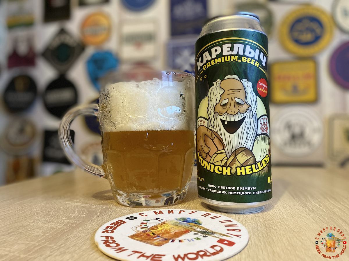 Пиво "Карелыч Премиум: Мюнхенский Хеллес" светлое непастеризованное нефильтрованное неосветлённое (алк.4,8% пл.12%). Объём: 0,5 л. В составе: вода подготовленная, солод пивоваренный ячменный светлый, солод пивоваренный ячменный тёмный, солод карамельный, хмель гранулированный, дрожжи. Изготовитель: ООО "Воттоваара" г. Петрозаводск, Карелия