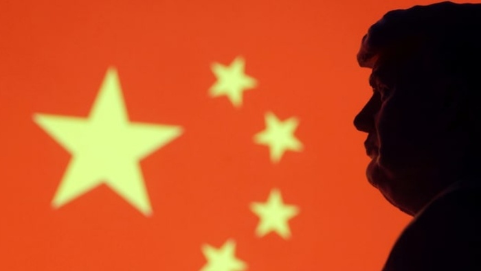 Миниатюрная модель избранного президента США Дональда Трампа, напечатанная на 3D-принтере, и китайский флаг. REUTERS