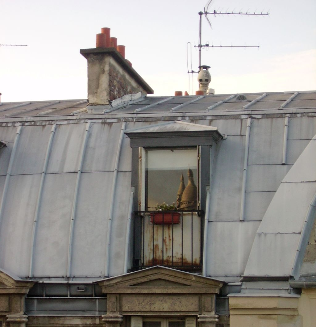 Одной из важных особенностей жилья в любом путешествии является его удачное расположение. В Париже нам везёт - как-никак сами выбираем себе место для проживания. Хоть мы и путешествуем на автомобиле, но всегда приятно остановиться так, чтобы основные достопримечательности были в шаговой доступности. Вот и в этот раз мы удачно выбрали место - из окна видна Эйфелева башня (Tour Eiffel), а в окнах дома напротив отражаются купола ещё одной визитной карточки Парижа - базилики Сакре-Кёр (Basilique du Sacré-Cœur), расположенной на вершине холма Монмартр - самой высокой точки французской столицы.