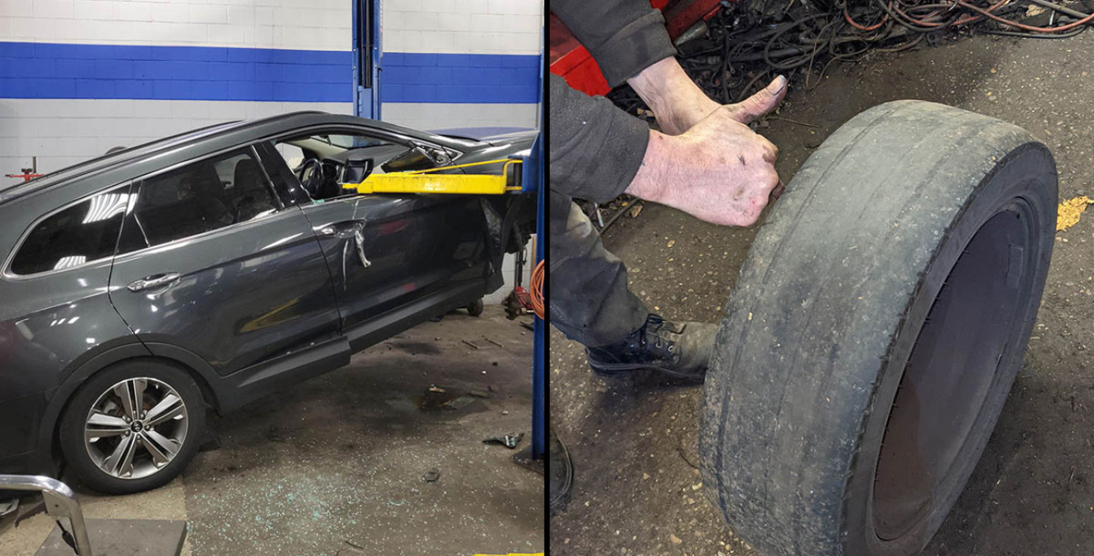 Автоледи попросила механиков починить машину. Сказала, что нужно поставить новую резину. На самом деле диск тоже пришёл в негодность, а ещё и полетела подвеска