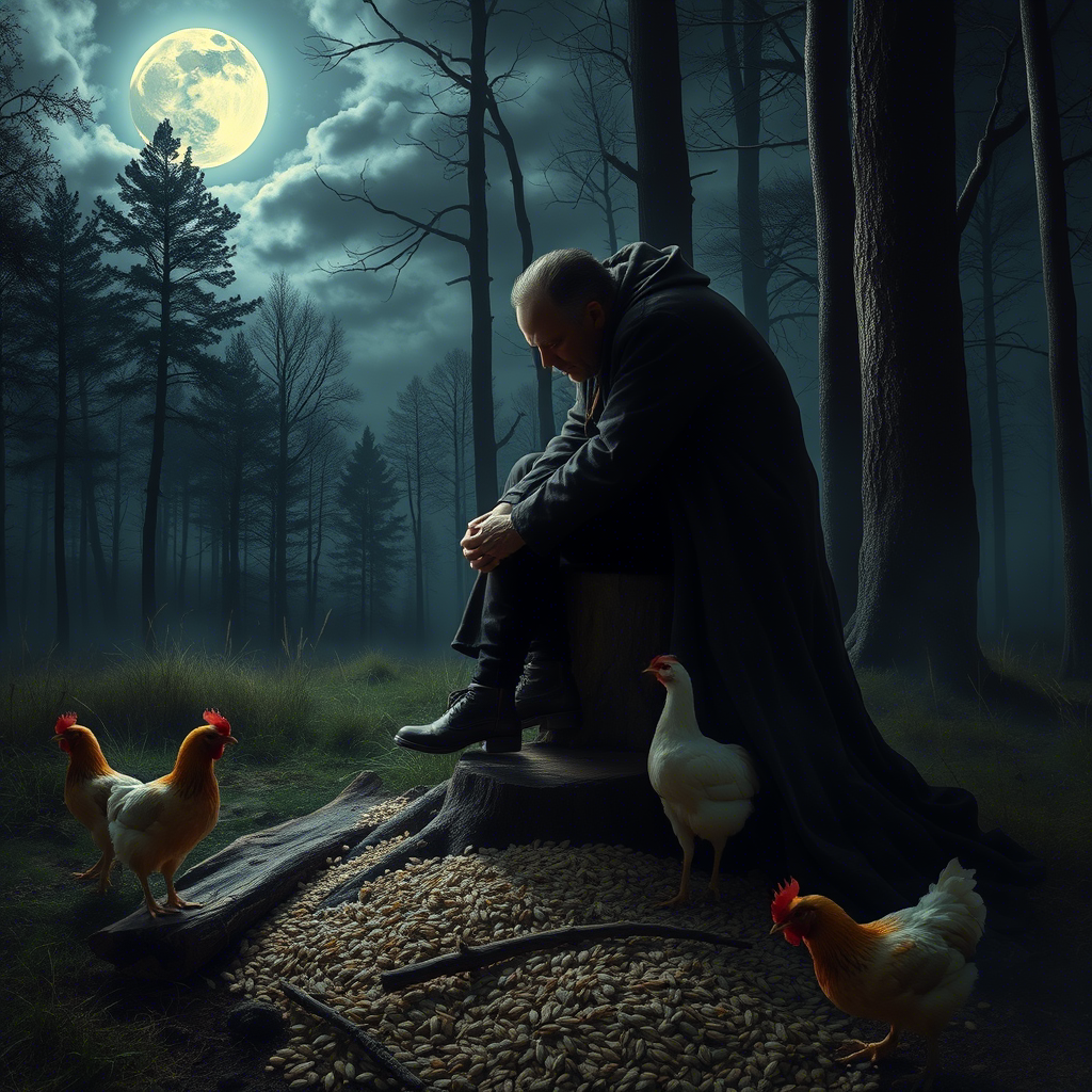 Вот вам история, после которой я в церковь хожу каждое воскресенье. Даже бабка Агафья, наша деревенская знахарка, крестится, когда я мимо избы иду — говорит, от меня серой пахнет. Но это потом. А началось всё в ту пятницу, когда я, дурак, решил срезать путь через старый кладбищенский лес. Ну, знаете, как бывает: день долгий, работал как проклятый, а тут ещё и дождь зарядил. Короче, торопился домой. Тем временем лес будто живой стал. Ветки скрипят, как кости, луна за тучами прячется, а под ногами то ли корни, то ли чьи-то пальцы цепляются. Я, конечно, матерился — мол, черти, деритесь сами, я тут мимоходом. И тут... бац! У пня сидит мужик. Не старый, не молодой, в чёрном пальто, будто из сажи сшитом. Лицо — ни морщинки, только глаза: один как уголь, другой — белый, будто молоко пролили. Улыбается. — Заждался, — говорит, — думал, не придёшь. Я, естественно, осел. Но язык не отнялся: