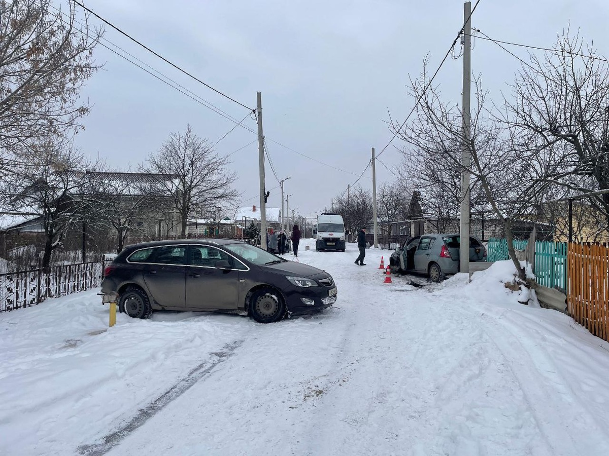 Рено отбросило в забор после ДТП с Опелем под Липецком 20 февраля