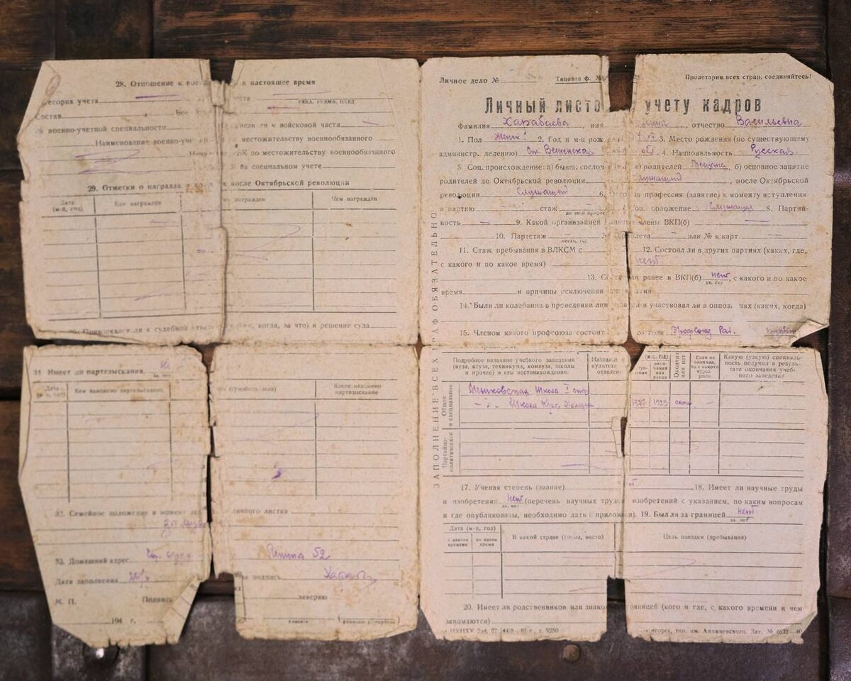 Середина ХХ века. Научно-техническая революция широко шагает по Советскому союзу, перестраивая технические основы материального производства и превращая науку в ведущий фактор производства. Ценность человека на рабочем месте возрастает пропорционально его компетенциям и преданности идеям социализма. В те времена о каждом работнике полагалось знать всю подноготную. Помимо трудовой книжки заводился личный листок по учёту кадров, где вписывалась основная информация о человеке: где и на кого учился, в каком профсоюзе он состоит, имеет ли партвзыскания и т.п. Писались и развёрнутые биографии. Именно поэтому документы 1930-1970 гг. считаются важнейшей находкой среди тех, кто исследует свою родословную. Ведь имея такие документы на руках, можно за пару минут ознакомиться с ними и узнать о предке ценную информацию. Иметь такие артефакты на руках – удача, но важно сберечь их, а значит, сохранить семейную историю для будущих поколений. Этой логикой руководствовался и наш заказчик, когда принёс