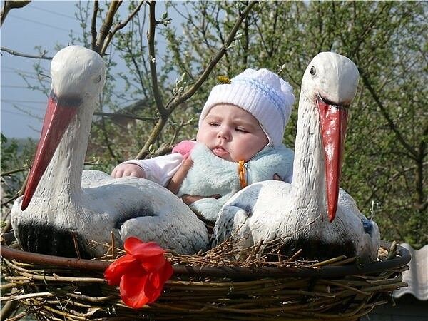 История о том, что наследников приносит аист, известна во всем мире. Фактически, это один из наиболее популярных родительских мифов Европы и Соединенных Штатов (где, что самое интересное, аисты не водятся, и увидеть их можно разве что в зоопарке). Культуры прошлых столетий считали этих больших белых птиц символами плодородия, связанными с весной и возрождением природы. Согласно одному поверью, аист помогает женщине забеременеть, просто посмотрев на нее, а если верить другому - души не рожденных ждут своего часа в уединенных влажных местах, таких как болота, колодцы, ручьи и пруды. Аистов часто замечали как в водоемах, так и в гнездах на крышах домов, вот и "наградили" пернатых почетной обязанностью - доставлять по дороге заодно и младенцев. В Германии верили, что аисты отыскивают человеческое потомство в пещерах, скрытых в скалистых обрывах под названием "Adeborsteine" или "Аист-камни". Ребенок, который хотел братика или сестру, должен был пропеть специальную песню о своих желания