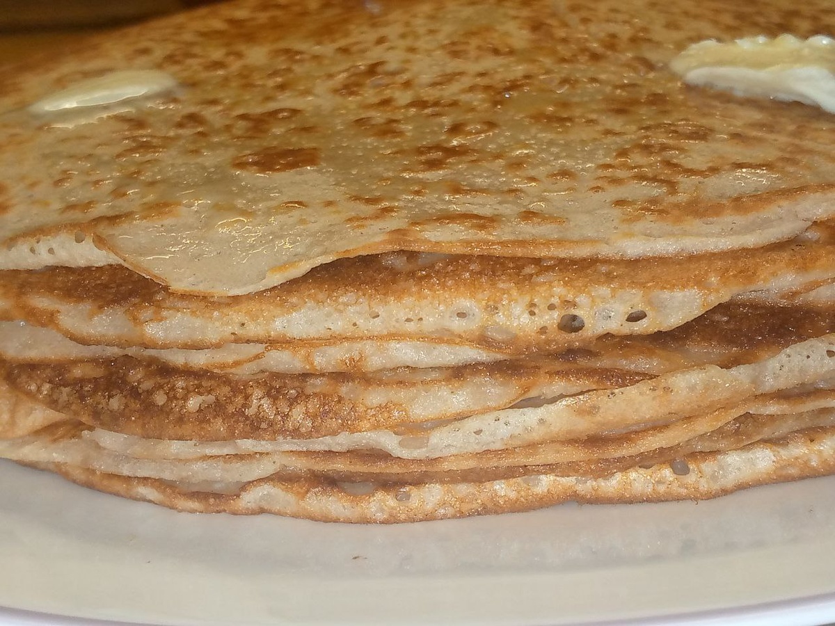 Всех приветствую! В преддверии Масленицы делюсь с вами рецептом очень вкусных гречневых блинов. Я не буду расписывать какие они вкусные и ароматные! И какой запах стоит от них в доме, когда они пекутся! Поэтому меньше слов и ближе к делу. Даю рецепт на 9 блинчиков. Но я удваиваю его сразу. Нам потребуется: -Молоко теплое 500мл -Мука пшеничная 200 грамм -Мука гречневая 100 грамм -Яйца у меня СО 2 штуки -Масло растительное 50мл -Дрожжи сухие чуть меньше чайной ложки -Сахар одна столовая ложка с горкой -Соль 0.5 чайной ложки Молоко немного подогреть, добавить сахар и соль. Размешать. Смешать между собой две муки и добавить туда дрожжи. Всыпать сухую смесь в теплое молоко и хорошо размешать венчиком. Поставить в теплое место, пока не поднимется в два раза: Когда поднимется, добавляем яйца и масло. Хорошо перемешиваем. И опят ставим в теплое место до увеличения объёма в два раза: Тесто подошло и хорошо пузырится: Перемешивать ничего не нужно!!! Разогреваем хорошо сковородку. Смазываем её
