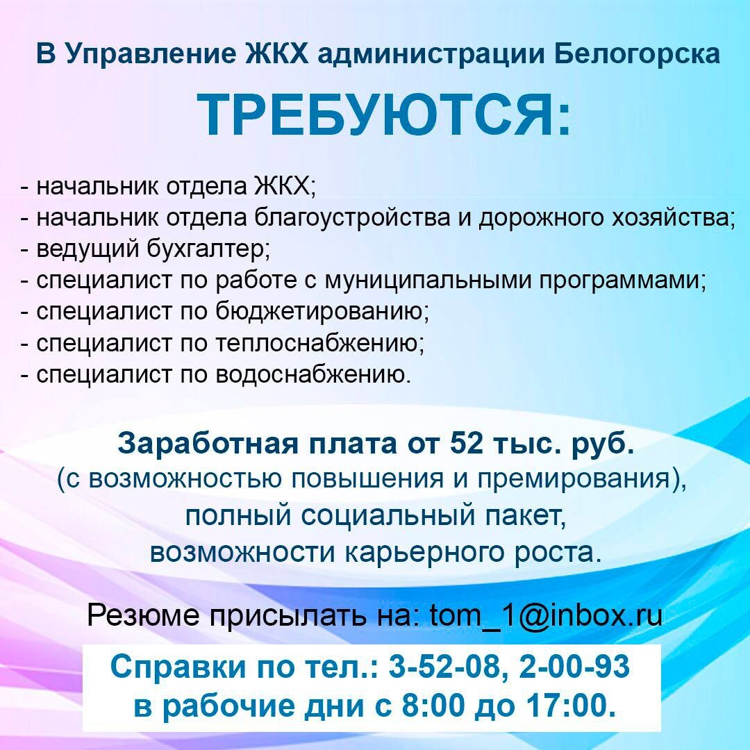 В Управление ЖКХ администрации Белогорска требуются специалисты