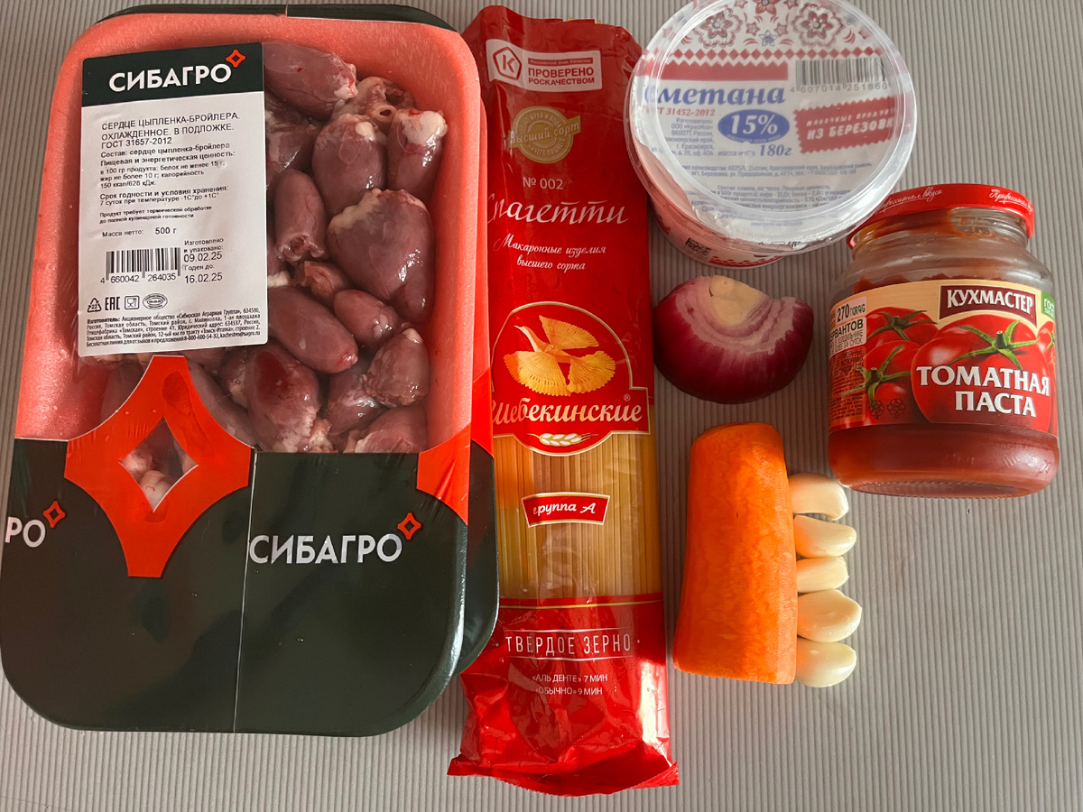 - Моем сердечки,очищаем от лишнего жира и крови, нарезаем пополам.