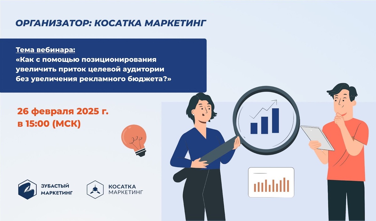 Вы вкладываете много денег в рекламу, но клиенты к вам так и не идут? Возможно, вы неправильно позиционируете свой бренд и он теряется среди сотни похожих. Чтобы ваш продукт выделялся среди конкурентов, важно правильно выстроить бренд — так вас будут узнавать, доверять вам и выбирать именно ваш продукт. Как это сделать без дополнительных вложений в рекламу? Об этом мы расскажем на бесплатном вебинаре «Как с помощью позиционирования увеличить приток целевой аудитории без увеличения рекламного бюджета?», который мы проведем в онлайн-формате 26 февраля в 15:00 по МСК. Вы получите море актуальной информации, реальные кейсы и практические советы, которые помогут сократить маркетинговые расходы и сохранить высокий результат.. Что вас ждет на предстоящем вебинаре? Данный вебинар будет особенно полезен: Вы получите пошаговое руководство по выстраиванию комплексного маркетинга в бизнесе. А для самого активного участника вебинара мы подготовили подарок — книгу Станислава Покрышкина «Зубастый мар
