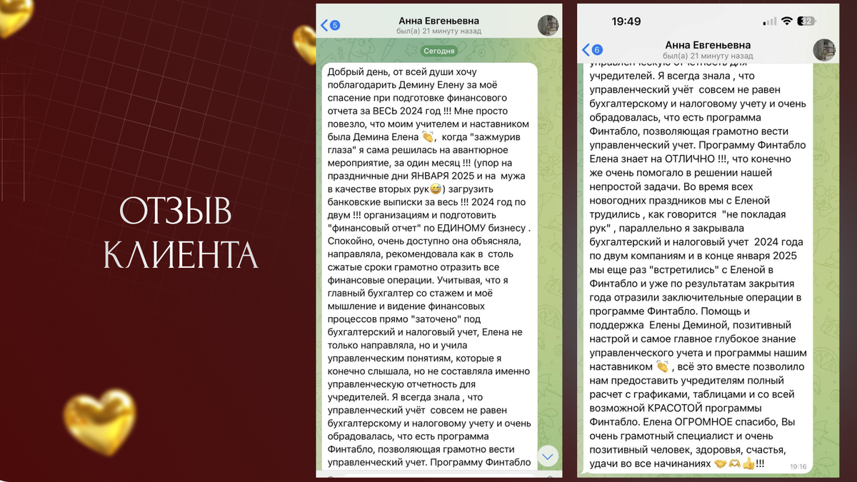 К нам обратился клиент — две связанные организации, но консолидированной отчётности не было. Информацию пытались собрать из бухгалтерских программ, но результат оставлял желать лучшего: бухгалтер говорил на языке проводок, а собственники не понимали цифры. Каждый раз разговор превращался в путаницу. Закончился 2024 год, впереди собрание учредителей, и вопрос о предоставлении отчётов встал особенно остро. Генеральный директор обратился к главному бухгалтеру, но в этот раз она решила не разбираться в одиночку — пришла за помощью к нам. Мы предложили использовать Финтабло — сервис, который превращает цифры в понятные отчёты. Всю новогоднюю неделю вводили данные, настраивали показатели, и вот результат: ✅ Собственники впервые увидели полный финансовый расклад по своим компаниям. ✅ Доходы, расходы, прибыль — всё наглядно и доступно. ✅ Вопрос «чем владеет организация?» наконец решён — баланс дал точный ответ. На собрании не было вопросов, непонимания и догадок. Все увидели реальную картину б