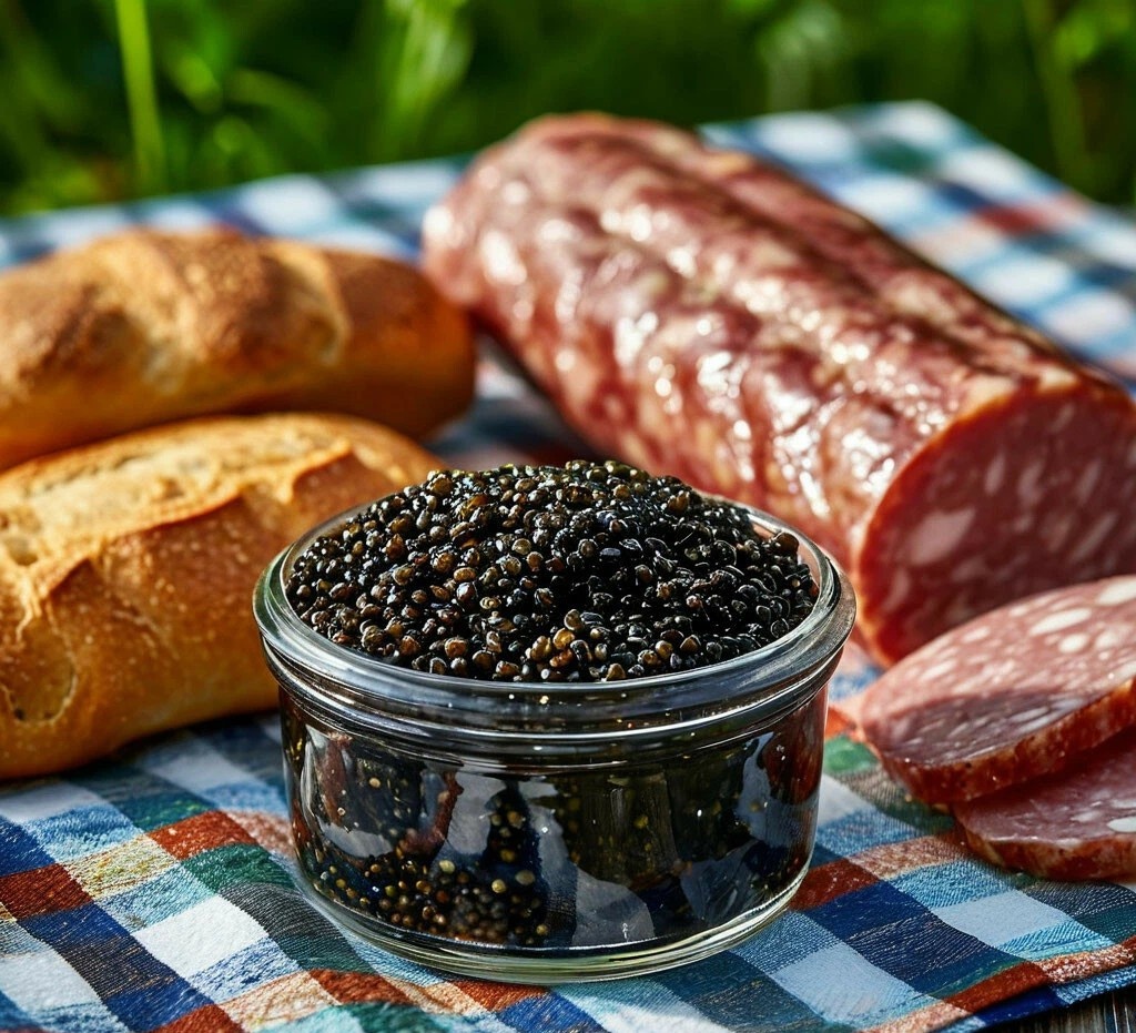 Хан разворачивал свёртки и на скатерти появилась черная икра в банке, палка салями, хлеб, немного свежих помидор и огурцов, копчёное сало и жестяная банка кофе. Потом достал ещё плитку шоколада.