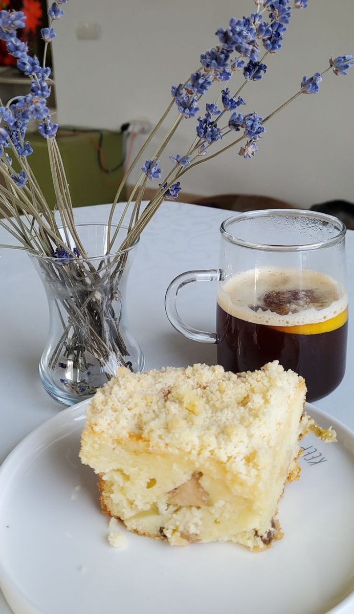 Этот пирог очень похож на яблочную шарлотку, но с некоторыми вкусными изменениями. Желательно чтобы сметана для этого пирога была очень жирная, лучше домашняя. У меня куплена домашняя сметана, которую, если перевернуть банку вверх дном, не вытекает. Слово штрейзель не должно вас пугать, он готовиться очень легко, но придает шарлотке определенный шарм. Ингредиенты: 2-3 яблока горсть изюма мука 1,5 стакана 3 яйца сахар 1 стакан 50 гр сливочного масла сахар 1 стакан ванильный сахар 2 x&k& сметана 300-330 гр разрыхлитель 1 ч. л. Для штрейзеля: 3 ст. л. муки, 3 ст. л. сахара, 30 гр слив. масла Яблоки нарезать тонкими ломтиками, изюм замочить в горячей воде. Взбить яйца с сахаром. Добавить сливочное масло. Продолжать взбивать. Добавить сметану. Размешать. Добавить ванилин, можно заменить корицей. Размешать. Добавить просеянную муку и разрыхлитель, размешать. Тесто готово. Оно должно медленно стекать с ложки. Емкость застелить пергаментной бумагой и смазать маслом. Выложить половину теста,