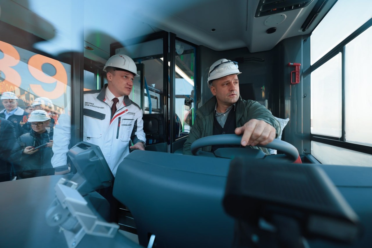 Артем Жога не только внимательно осмотрел автобусы, но даже попробовал, насколько эти машины удобны в управлении.