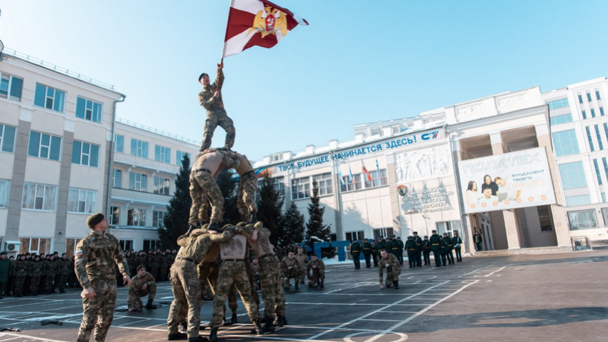 Построение открылось поднятием Государственного флага РФ и торжественным выносом знамени технического университета с орденом Трудового Красного Знамени. С приветственным словом обратился ректор СГТУ, профессор, председатель реготделения «Российского военно-исторического общества» Сергей Наумов. Он напомнил, что Президентом РФ Владимиром Путиным 2025 год объявлен Годом защитника Отечества и поздравил всех с наступающим праздником: «На протяжении многих десятилетий наша великая армия с честью несет свое Знамя через бои и подвиги, прорывы и блокады. Сегодня наши военнослужащие достойно выполняют свой воинский долг в ходе специальной военной операции. Несомненно, Победа будет за нами! Дорогие политеховцы