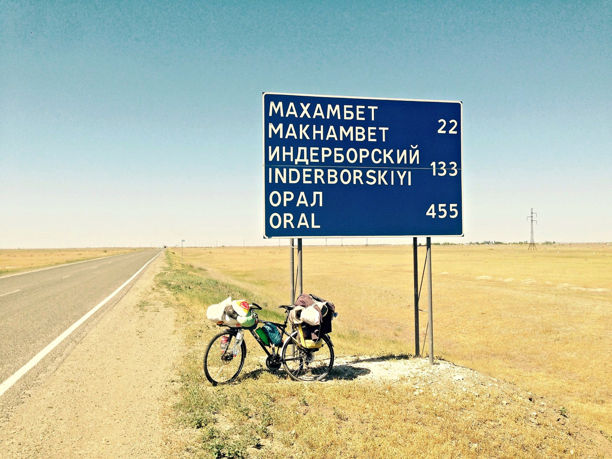 Сразу оговорюсь, что пересекал Азербайджан галопом - за 10 дней, которые можно находиться в стране без регистрации, а в Казахстане хоть и провёл месяц, но лишь в западной его части, и преимущественно в аулах. В Казахстане эта тенденция - что мужчины ещё говорят на русском, а женщины уже почти не говорят - была заметна более ярко. Потому, наверное, что там я провёл больше времени и чаще бывал в аулах. Например, однажды судьба занесла меня в придорожную чайхану, и я прожил там 6 дней. Из-за резкого падения температуры с 36 до 16 по Цельсию в степи началась песчаная буря, встречный ураганный ветер, и ехать стало невозможно. Пришлось везти велосипед, а самому идти пешком. Провезя его так около 45 километров, я увидел на трассе чайхану и попросился переждать. Меня с радостью впустили, бесплатно кормили, и выделили на весь срок койку в комнате для дальнобойщиков. Муж занимался хозяйством, конюшнями, скотиной, разными другими делами, а жена, главным образом, суетилась на кухне. И так, по в