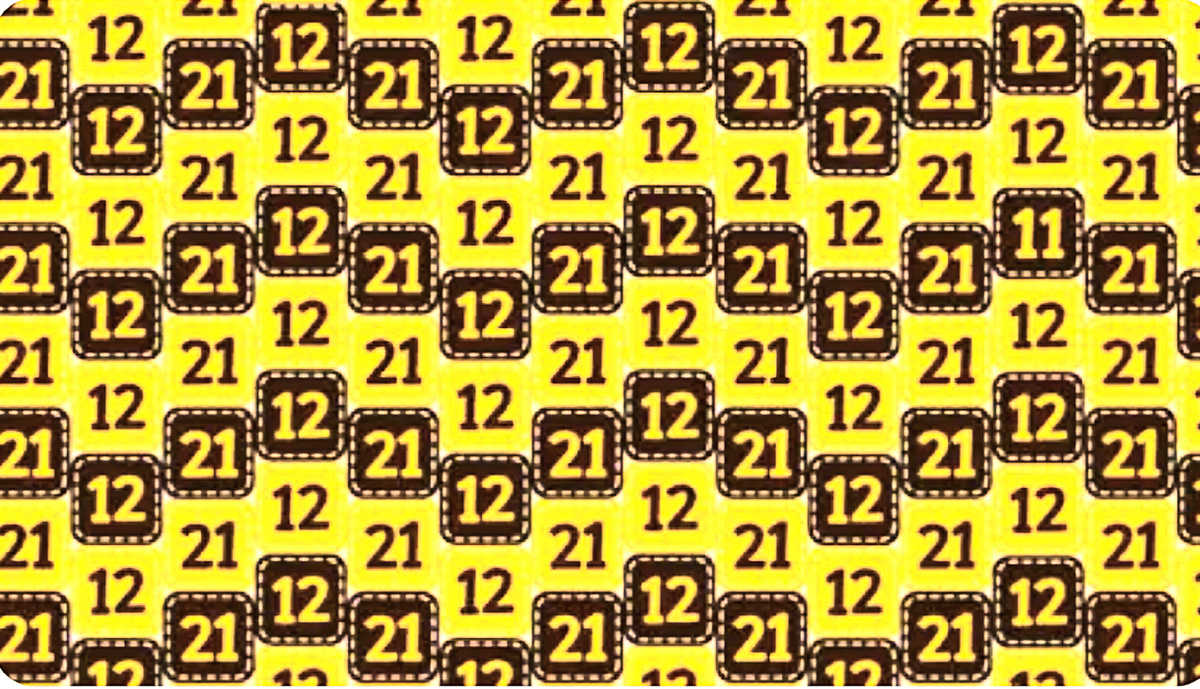 В современном быстро меняющемся цифровом мире наша способность концентрироваться и уделять внимание деталям постоянно снижается. От просмотра социальных сетей до режима многозадачности на работе — наш разум часто перегружен информацией. На первый взгляд вы видите узор, заполненный цифрами «12» и «21». Однако среди них спрятано число «11». Вопрос в том, сможете ли вы его найти? Наш мозг любит сложные задачи. Есть неоспоримое удовольствие в том, чтобы найти что-то спрятанное, что другие могут упустить из виду. Это даёт ощущение выполненного долга и разжигает дух соперничества среди друзей и родственников. Можете ли вы найти 11 на этом изображении? Внимательно посмотрите на изображение. Цифры расположены в повторяющемся порядке, что затрудняет поиск числа 11. Удачное использование контрастных цветов и одинаковых стилей шрифта делает задачу ещё более сложной. Вместо того чтобы рассматривать изображение целиком, разбейте его на более мелкие части и просматривайте строку за строкой. На