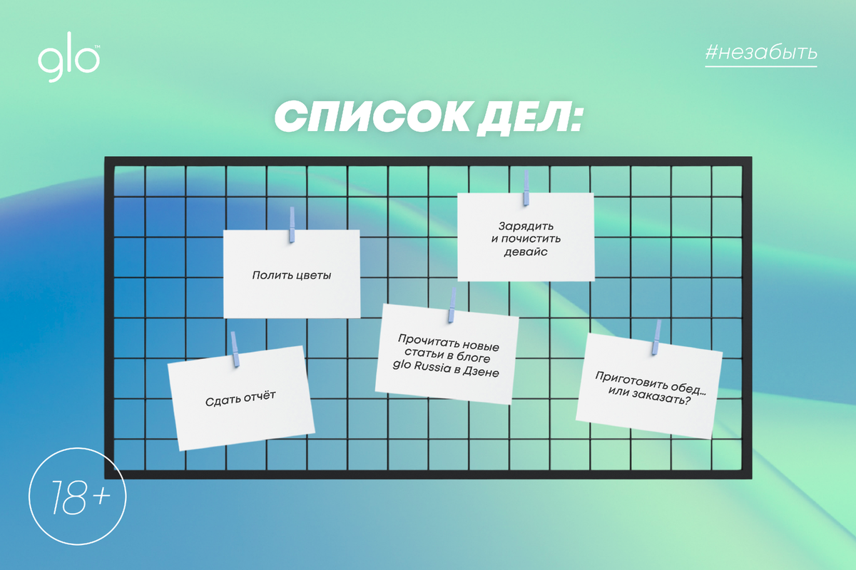 В gloленде жизнь кипит, дел полно, и важно держать всё под контролем. На рабочем столе – стикеры, которые напоминают о главном: - Полить цветы - Сдать отчёт - Зарядить и почистить девайс - Прочитать новые статьи в блоге glo Russia в Дзене - Приготовить обед… или заказать? Что в твоём списке дел на сегодня? 18+ #glorussia