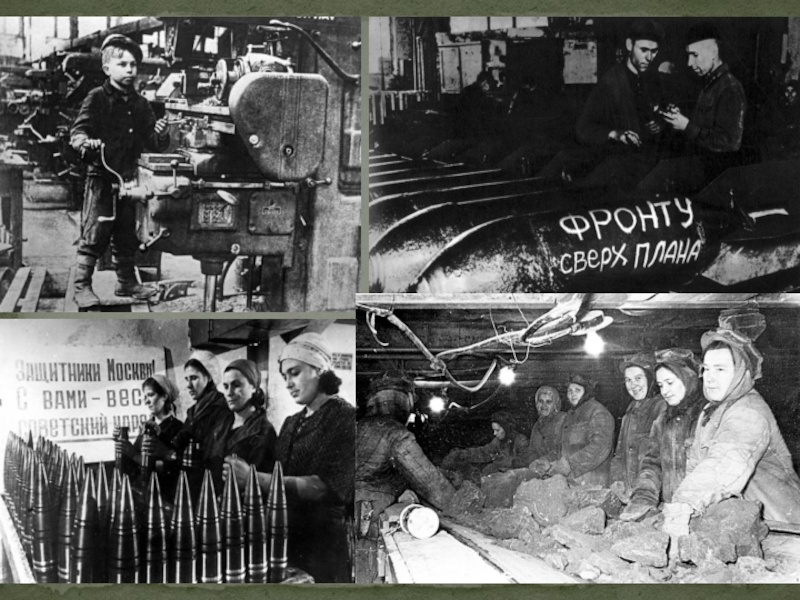 Главным вкладом Кузбасса в победу над Германией стало обеспечение фронта всем необходимым. Жители Кузбасса, а это были в основном женщины, подростки и ветераны-пенсионеры, пришли в шахты, на металлургические предприятия, чтобы заменить мужчин, ушедших на фронт.