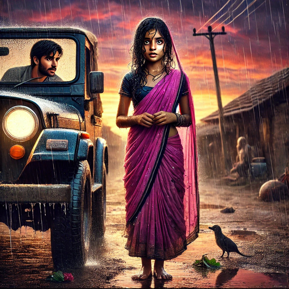 Она стояла босиком на краю пыльной дороги, а ветер трепал ее старое сари, выцветшее от солнца до бледно-розового оттенка. Капли дождя падали на ее лицо, смешиваясь с пылью, и стекали по щекам, словно слезы, которые она давно разучилась проливать. Ее звали Анушка, и в деревне говорили, что такой красоты, как у нее, не видел даже сам бог Кришна, когда играл на флейте под звездами. Черные волосы, длинные, как ночь над Гангом, обрамляли лицо с огромными глазами, в которых отражалась то ли надежда, то ли безысходность. Но кто замечал ее красоту? Для всех она была просто дочерью бедного ткача, чьи пальцы кровоточили от работы, а мечты умирали под тяжестью нищеты.
