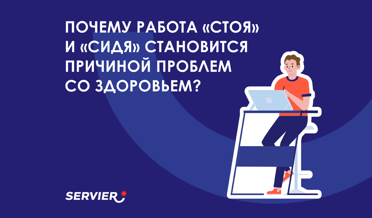 Рабочее место определяет положение тела, в котором находится человек во время работы. Выбор позы ограничен, что не оставляет свободы для передвижения и чередования задействованных мышц и негативно сказывается на здоровье [1]. Проблемы, к которым приводит «стоячая» и «сидячая работа»: Длительное пребывание в состоянии стоя или сидя может приводить к развитию варикоза и геморроя. Геморрой развивается из-за повышенного давления в брюшной полости и нижней части прямой кишки: при частых запорах и излишнем натуживании, беременности, регулярном поднятии тяжестей, лишнем весе, а также длительном сидении [2]. Варикозное расширение вен нижних конечностей возникает, когда вены теряют тонус и эластичность из-за застоя и недостаточного движения крови в них: при длительном сидении и стоянии в статичной позе. Из этого делаем вывод: и стоячая, и сидячая работа могут приводить к проблемам со здоровьем. А значит, необходимо внести небольшие изменения в рабочий распорядок, чтобы снизить риск возникновени