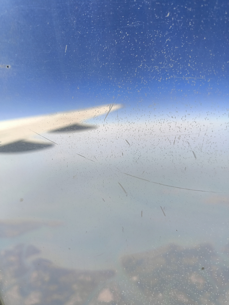 Спустя сутки мы без задержек вылетели из Новосибирска. Самолет был, как и писали во всех отзывах, очень старенький. Правда, все работало исправно, освещение над креслом светило, спинки откидывались. Наши места были рядом с туалетом, но оттуда НЕ пахло. Пледы были на всех желающих, свеженькие. Иллюминаторы какие-то мутненькие.