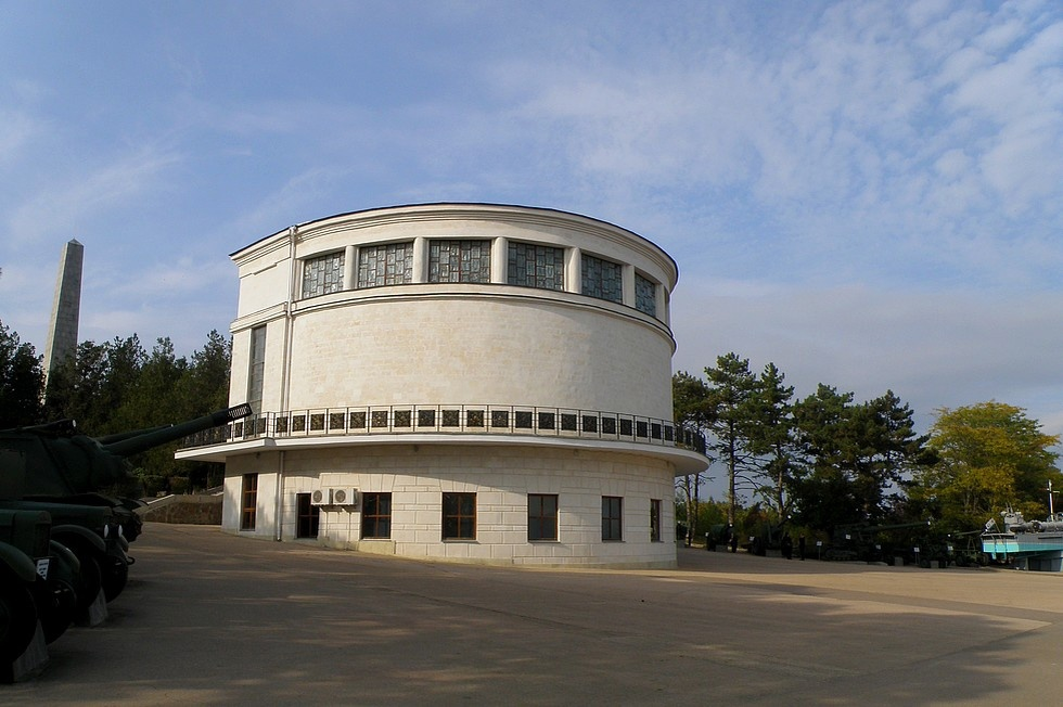 4 ноября 1959 года на Сапун-горе открылось здание Диорамы, перестроенное с элементами здания военно-полевого музея по проекту архитектора Виктора Петровича Петропавловского (1918-2000), участника восстановления Севастополя, под его началом в городе-герое восстановлено и построено больше 40 зданий. Здание Диорамы выполнено из инкерманского камня. То есть, немного запутанно написал, но так официально пишут. В общем, как я понял, элементы музея 1945 года это часть 1 этажа (здание в 1959 стало двухэтажным).