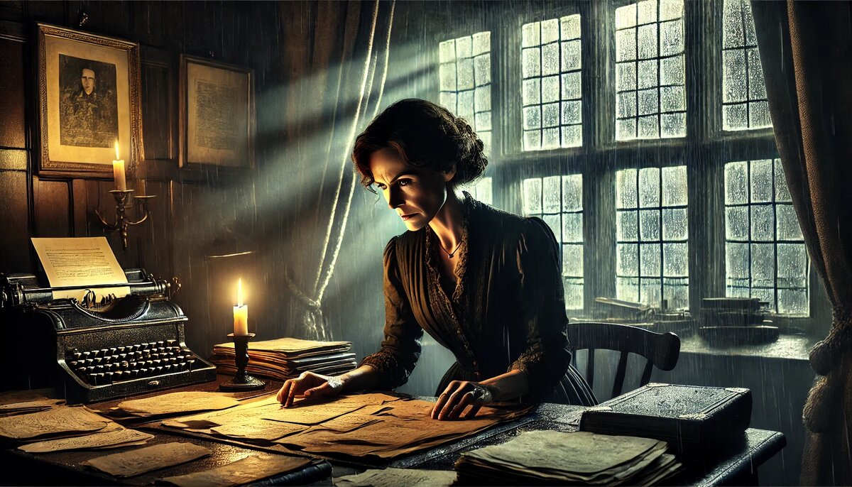 Вдруг на улице послышался хруст гравия — чьи-то шаги. Сердце ёкнуло: «Неужели отыскали меня так быстро?» Элеонора вгляделась в окно, заметила силуэт человека, проходившего во двор гостиницы. Он был укутан в плащ, в руках шляпа. Остановившись, фигура огляделась, будто ища чьё-то окно. Элеонора прикусила губу, погасила лампу, чтобы не выдать себя. «Дядя Уоррингтон? Или кто-то ещё?»