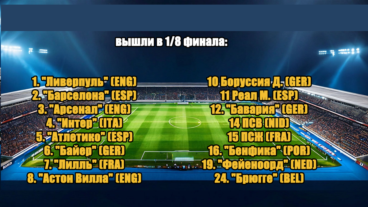 Привет всем. Состоялись жеребьёвки сразу трёх этапов Лиги Чемпионов. Успешно в 1/8 финала пробилось 16 клубов: Сердечно благодарю всех, кто поддерживал канал монетой. Услышимся на «спортивном».