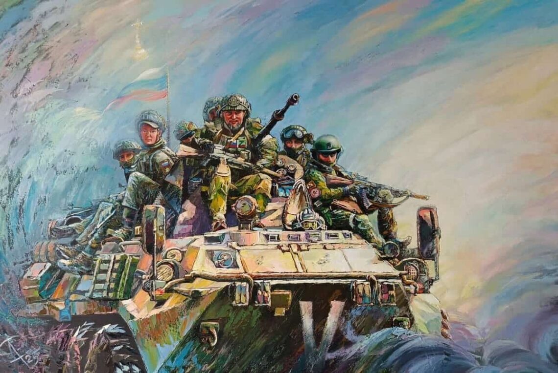 Автор работы посвятила ее участникам специальной военной операции. Картина написана маслом на полотне размером 120 на 70 сантиметров. В центре сюжета – боевая машина, на броне которой сидят бойцы с оружием в руках. Их лица воодушевлены Победой, и сами краски полотна говорят о том, что ребята возвращаются с вестью о мире. На заднем плане – рассеивающийся туман. Он аллегоричен. Под туманом автор понимает мрак войны, которую навязал нам Запад. И вот туман понемногу исчезает, и наши воины выходят на свет. Сквозь дымку виден российский триколор и купол храма, олицетворяющий тыл – молитвы родных за воинов. Еще один символ отчетливо выступает на броне. В церковнославянской азбуке знаком V до сих пор обозначают букву ижица. Она замыкает кириллический алфавит. По сути, это и есть божественное завершение, конец. Не случайно этот знак стал символом освобождения Украины от неонацистов. А кто же они – герои картины Федотовой? Реальны ли их лица или это вымышленные персонажи? За ответом на эти вопро