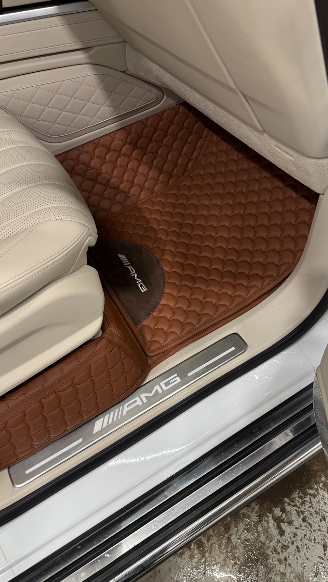 Владелец Mercedes хотел коврики, которые не только защитят салон, но и дополнят его интерьер, сохраняя фирменный стиль в тёплых оттенках. Важными моментами стали точная посадка, качественные материалы и вышивка AMG.