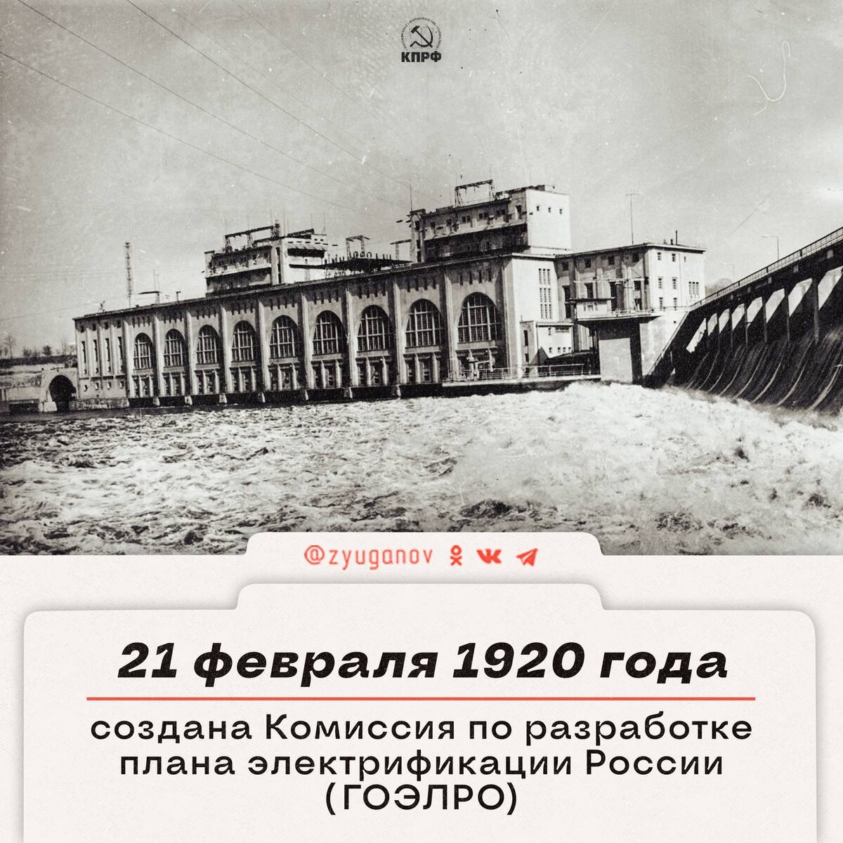 21 февраля 1920 г. создана Комиссия по разработке плана электрификации России (ГОЭЛРО).
