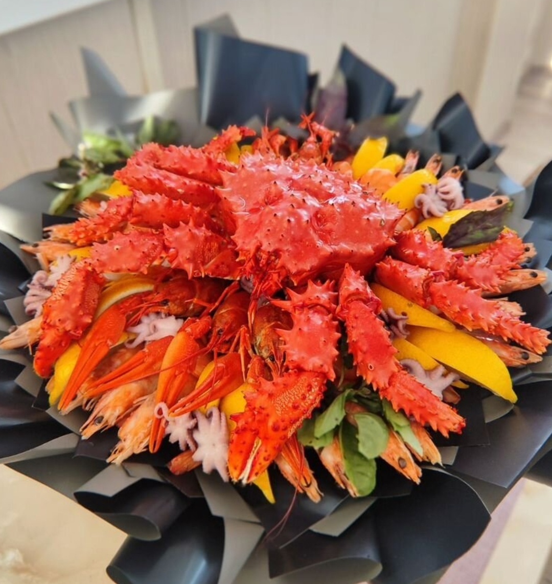 И теперь в моду входят мужские букеты из продуктов питания. С морепродуктами или с колбасными и мясными изделиями.