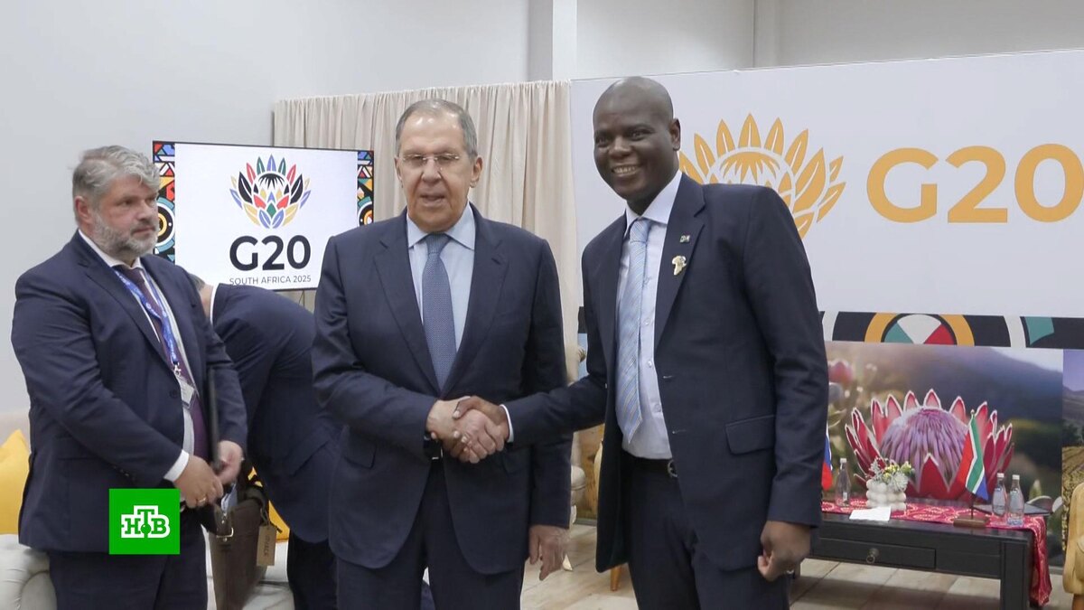 [ Смотреть видео на сайте НТВ ] Государства мирового большинства позитивно оценивают начало российско-американского диалога, заявил Сергей Лавров по итогам встречи министров иностранных дел стран «большой двадцатки».«Все приветствовали нашу встречу», — сказал министр. При этом он отказался раскрывать темы, которые прорабатываются к возможной встрече президентов России и США, заметив, что это конфиденциальная информация. Во время двухдневных переговоров в ЮАР были как общие встречи министров стран G20, так и двусторонние. Москва придает особое значение укреплению отношений с африканским континентом и ЮАР здесь выступает надежным проводником. Доверительному диалогу Москвы и Претории способствуют и контакты на высшем уровне и экономические связи. Разноплановое взаимодействие Сергей Лавров обсудил со своим южноафриканским коллегой Рональдом Ламолой. Еще одним зримым символом теплых отношений России и ЮАР является Собор Преподобного Сергия Радонежского. Он был построен более 20 лет назад и