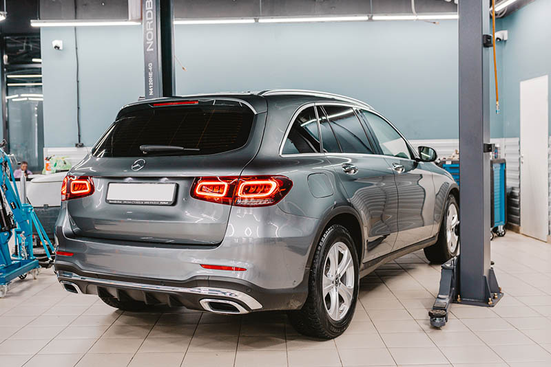 Эффектные премиальные кроссоверы Mercedes X253 относятся к сегменту SUV и успешно эксплуатируются в городских условиях, а также вне города. Тем не менее подвеска этих «немцев» очень чувствительна к качеству дорожного покрытия и ее расходные элементы быстро изнашиваются при повышенных нагрузках. К нам приехала владелица стильного Mercedes GLC 300 4MATIC с пробегом 54 тыс. км для устранения неисправности, которая стала причиной стуков в передней подвеске и снижения устойчивости автомобиля при движении. По итогам проверки ходовой части выяснилось, что шаровые опоры нижних поперечных рычагов передней подвески подверглись значительной выработке и появились заметные люфты. В этом случае рычаги подлежат замене на аналогичные новые. Исходя из пожеланий клиентки, были подобраны качественные аналоги рычагов от производителя Lemforder. Согласовываем все необходимые процедуры с владелицей автомобиля, в том числе, последующий сход-развал, и приступаем к работе. Аккуратно снимаем левый и правый рыча