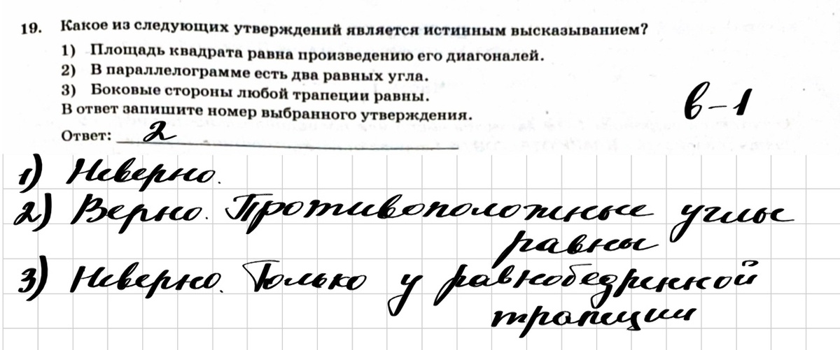 Задачи на разбор я беру из сборника Ященко, 37 вариантов (фото сборника можно увидеть на обложке статьи). Что такое №19? Это задания на определение верных и неверных высказываний. Эти задания я решу все (без каруселей). Часто при анализе высказываний помогают чертежи.