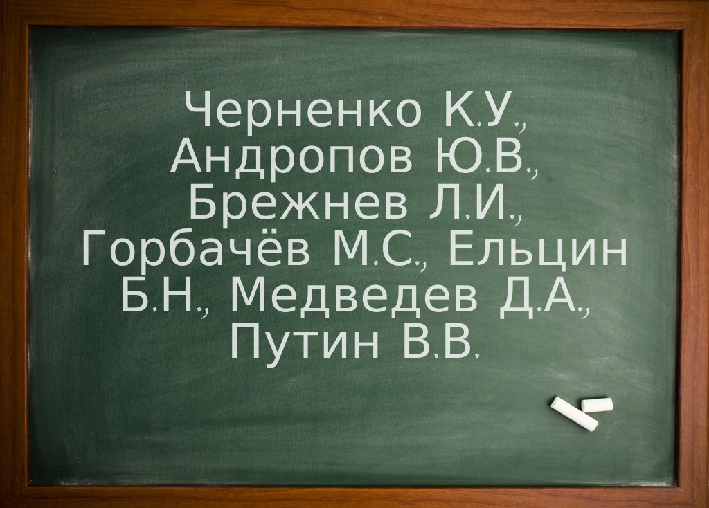 В тесте проверяется знание исторических руководителей (глав государства) и событий: Черненко К.У., Андропов Ю.В., Брежнев Л.И., Горбачёв М.С., Ельцин Б.Н., Медведев Д.А., Путин В.В. Есть еще много интересных тестов на канале Знать мир на пять. Проверяйте знания, постигайте новое, не останавливайтесь на достигнутом. Ведь мир безграничен и полон загадок и любит тех, кто стремится постичь неизвестное! Источники контента https://pozdnyakova.ucoz.ru/EGE/praviteli_Rossiis8_po21vek.pdf