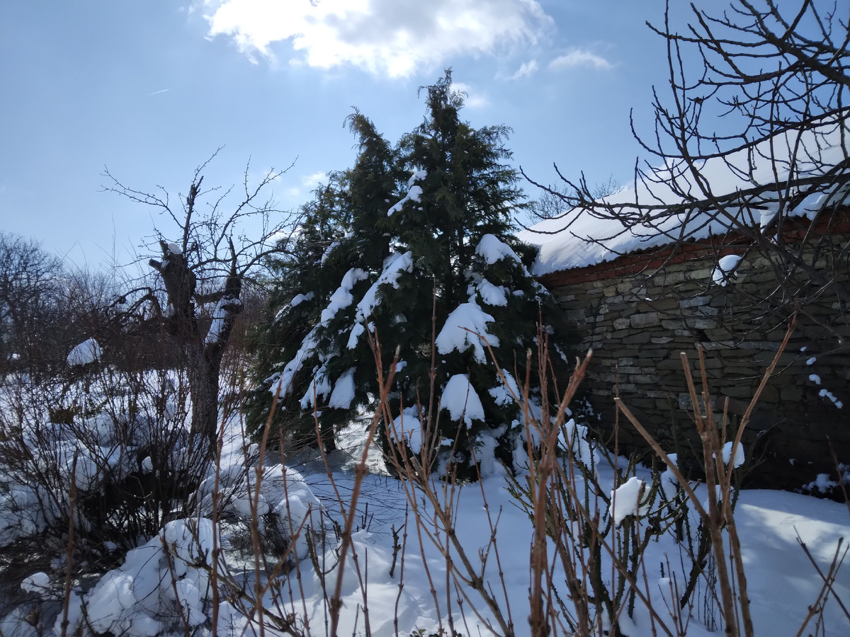Яркое солнце и ослепительно белый снег, хрустящий под ногами. До Бабы Марты осталась всего неделя, но зима пока не уходит. Ночами до - 10, днём тоже минус. Снега выпало довольно много- сантиметров 35- 40. Значит, весной и в водохранилище Камчия будет много воды. Уже хорошо. Наши хвосты кувыркаются в снегу. Погода им явно нравится, особенно Тосику. Шуба у него мощная, с плотным густым подшерстком и дома ему жарко. Я постелила в углу возле калитки синтетический коврик прямо на землю, сверху- сложенное вчетверо шерстяное одеяло и Тосик на этом одеяле ночует. Свою будку он разломал, а новую сколотить я так и не сподобилась. Но ему и так вполне комфортно. Если одеяло намокает- меняю на сухое, запас старых шерстяных одеял у меня приличный, штук десять. Так что в доме Тосик сейчас бывает мало, быстро начинает проситься на улицу. Выздоровел. Завтра собираюсь со знакомыми в Карнобат. Надо купить для собак фарш и сухой корм. Ну, и для нас с Сергеем продукты, какие будут по акциям в супер