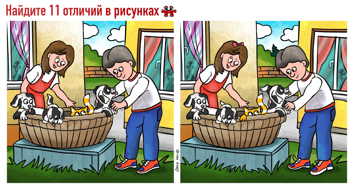 Доброе утро! Сегодня тема простая и приятная - лето, дача, дети, щенята и еще кое-кто. 11 отличий сегодня средней сложности. Парочка даже сложных! Приятного просмотра :) Горизонтальный тест: Вертикальный тест для мобильных устройств: Ответ: