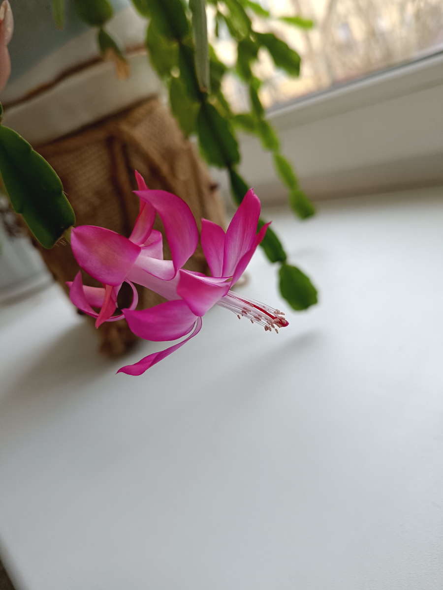 Всем привет 👋 Мне на работе коллеги отдали большой и довольно старый декабрист. У меня было немного надежд на то, что он пышно поцветет в декабре, так как бутоны уже начинали появляться. И в целом растение большое. Но чудо не произошло. Он поцвел. Правда всего одним цветочком😄 Остальные бутоны просто отвалились еще когда были совсем крошечными. Но это было даже ожидаемо, хоть я и верила в лучшее. У этого декабриста некоторые ветви слишком длинные и сегменты на них совсем мягкие и слабые. Прищипывали его явно очень и очень давно. Естественно на цветение у них просто сил не хватит. Да и в целом нормально за ним никто не ухаживал. Я подождала немного после окончания этого "обильного и пышного" цветения и решила его подщипнуть немного. И растению легче будет, так как эти вялые сегменты не будут тянуть на себя, да и внешний вид станет получше. Знаю, что декабрист необходимо прищипывать (откручивать сегметы) лучше летом. Но я уже не могу смотреть на его вялый вид. Хочется уже его прив