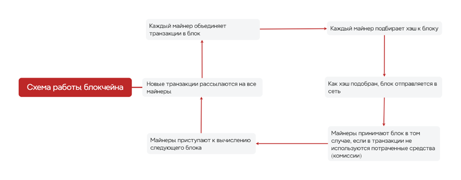 Вся информация реестра распределяется по компьютерам всех участников сети и соединена в цепочке информационных блоков. Подобно бухгалтерской книге, каждый блок в блокчейне связан с предыдущим, и изменение одного блока приведет к нарушению всей цепи (раздвоение сети – будет старая истинная цепь и новая ложная).