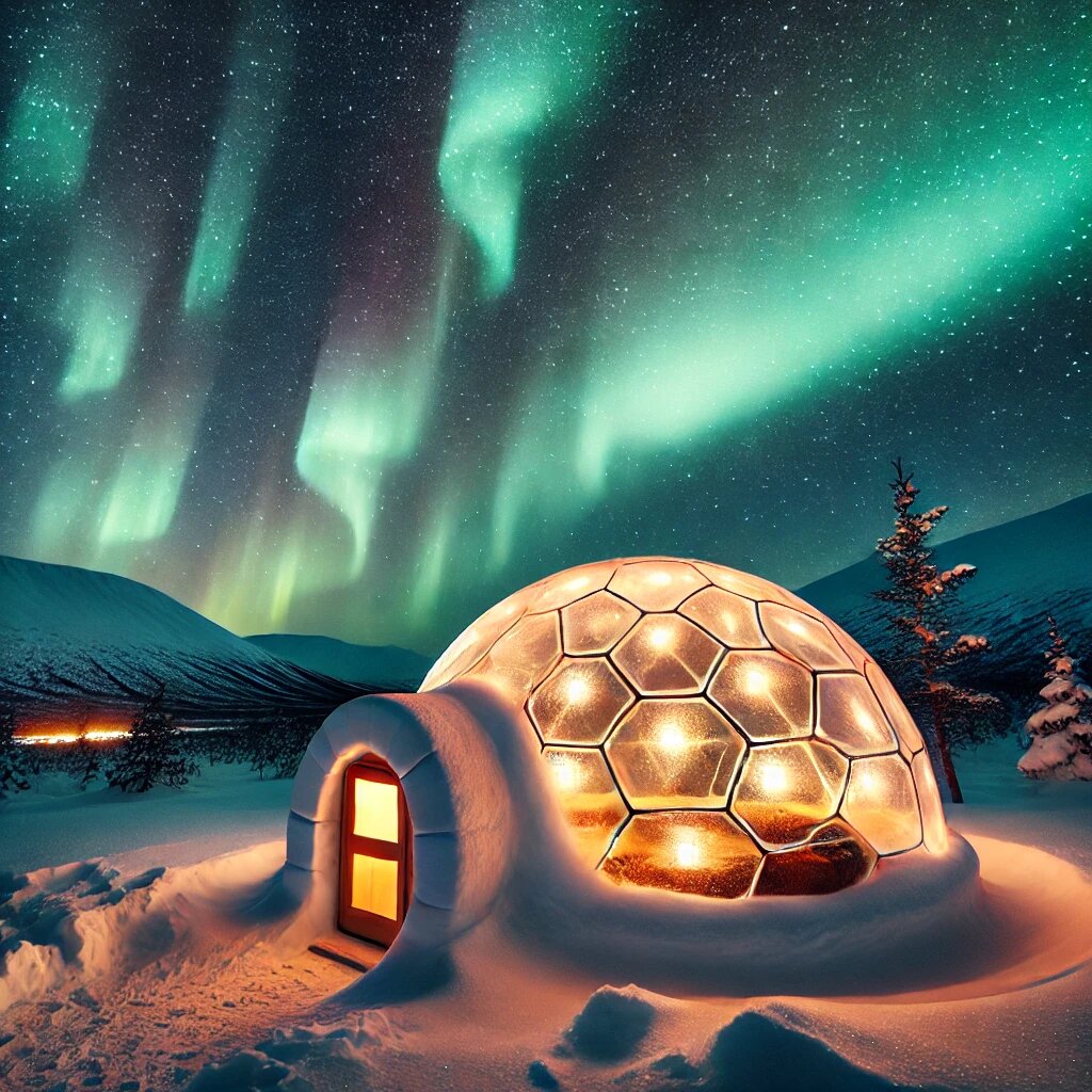 Aurora Village — это глэмпинг с купольными домиками-иглу, расположенный в 50 км от Мурманска на берегу озера Канентъявр. Прозрачные стены и потолок позволяют любоваться северным сиянием, не выходя из теплого и уютного домика.