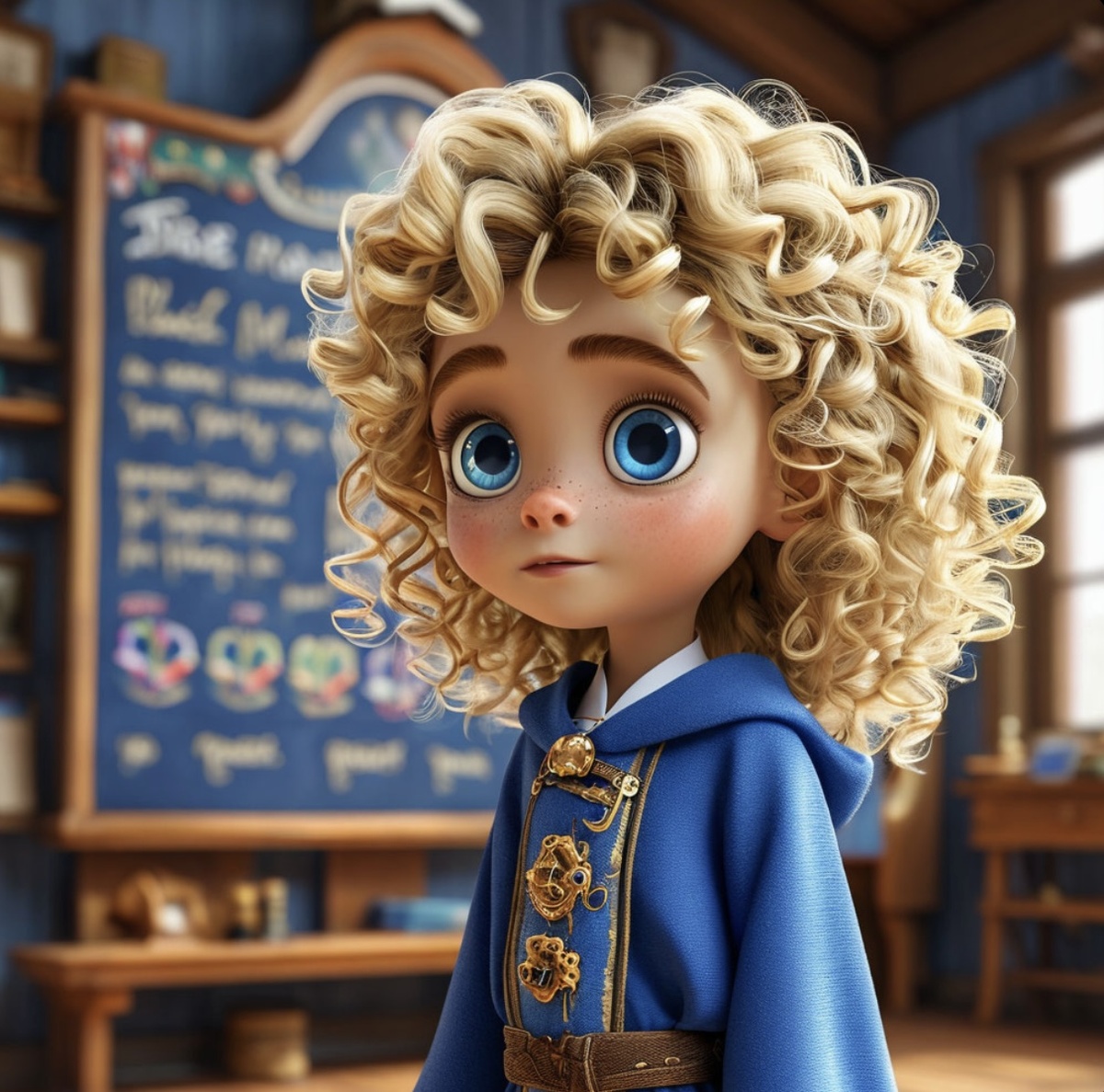 В школе магии и чародейства снова царило веселое оживление. Маленькая волшебница Марина с золотистыми кудряшками и голубыми глазками радостно прыгала по коридору, размахивая волшебной палочкой.
