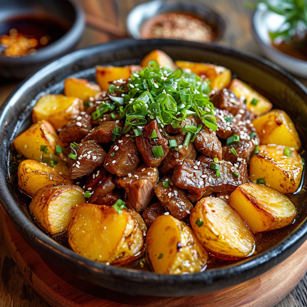 Картофельные дольки с ароматной свининой в медово-соевом соусе: просто, вкусно, сытно!