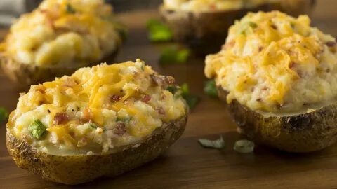 - Разрежьте картофель вдоль пополам, выньте часть мякоти, чтобы получились лодочки.