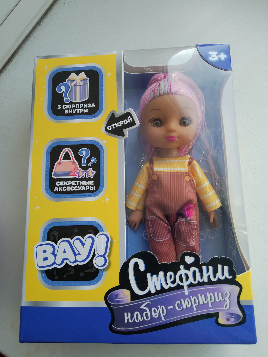 Добрый день. Кукла, конечно, не вполне моего формата, но довольно интересная. Мне её подарила крестница, у неё несколько куколок этой серии. Бренд Funky toys вообще довольно таки достойные игрушки выпускает. Итак- Стефани Там в закрытой части коробки "секретные аксессуары". Открываем. Достаём куклу Наряд- имитация комбинезончика и кофточки. А вот обувь вполне приличная. Личико милое, довольно ровное и качественно сделано. Волосы... Точнее нитки- печаль((( Тело у куклы шарнирное, как у экстры. Девочка отлично стоит Ну и "секретные аксессуары"))) Не знаю, зачем тут расчёска)) Формат для малышки Барби не подходит. А вот для этой девочки Стефани вполне может стать младшей сестричкой)) Вот такая малышка поселилась у меня в разделе небарби). На WB они стоят 200-300 р. Мне кажется, очень неплохое качество для такой цены. А у вас живут куклодетки? До новых встреч!