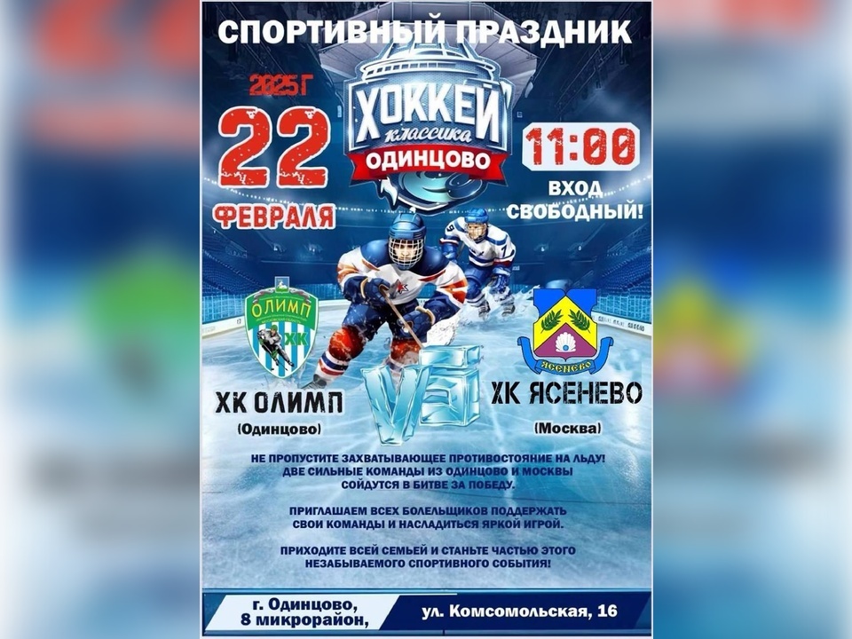 Хоккейный матч «Русская классика» пройдет 22 февраля в 8-м микрорайоне. Одинцовский хоккейный клуб «Олимп» приглашает на игру любителей хоккея. В гости к «олимповцам» приедет столичная команда «Ясенево». Оба коллектива практикуют атакующий хоккей и примерно равны по силе. Противостояние на льду обещает быть захватывающим. Организаторы встречи отмечают, что «русской классикой» в широком смысле слова называются хоккейные матчи, сыгранные на открытых площадках. Это неслучайно, так как отечественный хоккей начинался именно с улицы. Первый чемпионат страны в 1946 году из-за отсутствия крытых арен проводился именно на свежем воздухе. Матч пройдет на хоккейной коробке по адресу: г. Одинцово, ул. Комсомольская, д. 16. Начало в 11:00. Вход свободный. 12+ Ранее сообщалось, что в Одинцове впервые проходит чемпионат России по волейболу на снегу.