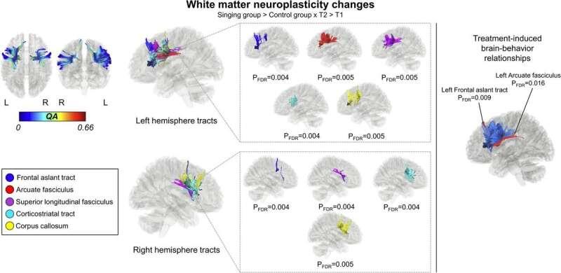 Инсульты часто приводят к афазии — расстройству речи церебрального происхождения. Около 40% пациентов, перенесших инсульт, страдают от афазии, и половина из них испытывают симптомы даже через год после приступа. Исследователи из Университета Хельсинки обнаружили, что пение может помочь восстановлению речи. Языковая сеть мозга отвечает за обработку языка и речи. У пациентов с афазией она повреждена, что затрудняет понимание и воспроизведение речи. Новое исследование, опубликованное в eNeuro, показало, что пение способствует восстановлению сети. Научный сотрудник Университета Хельсинки Алекси Сихвонен отметил: «Впервые наши результаты демонстрируют, что реабилитация через пение основана на изменениях нейропластичности мозга». Пение увеличивает объем серого вещества и улучшает связность белого вещества в языковой сети левого полушария, что улучшает речевую продукцию у пациентов. В исследовании приняли участие 54 пациента с афазией, из которых 28 прошли МРТ-сканирование в начале и конце. У